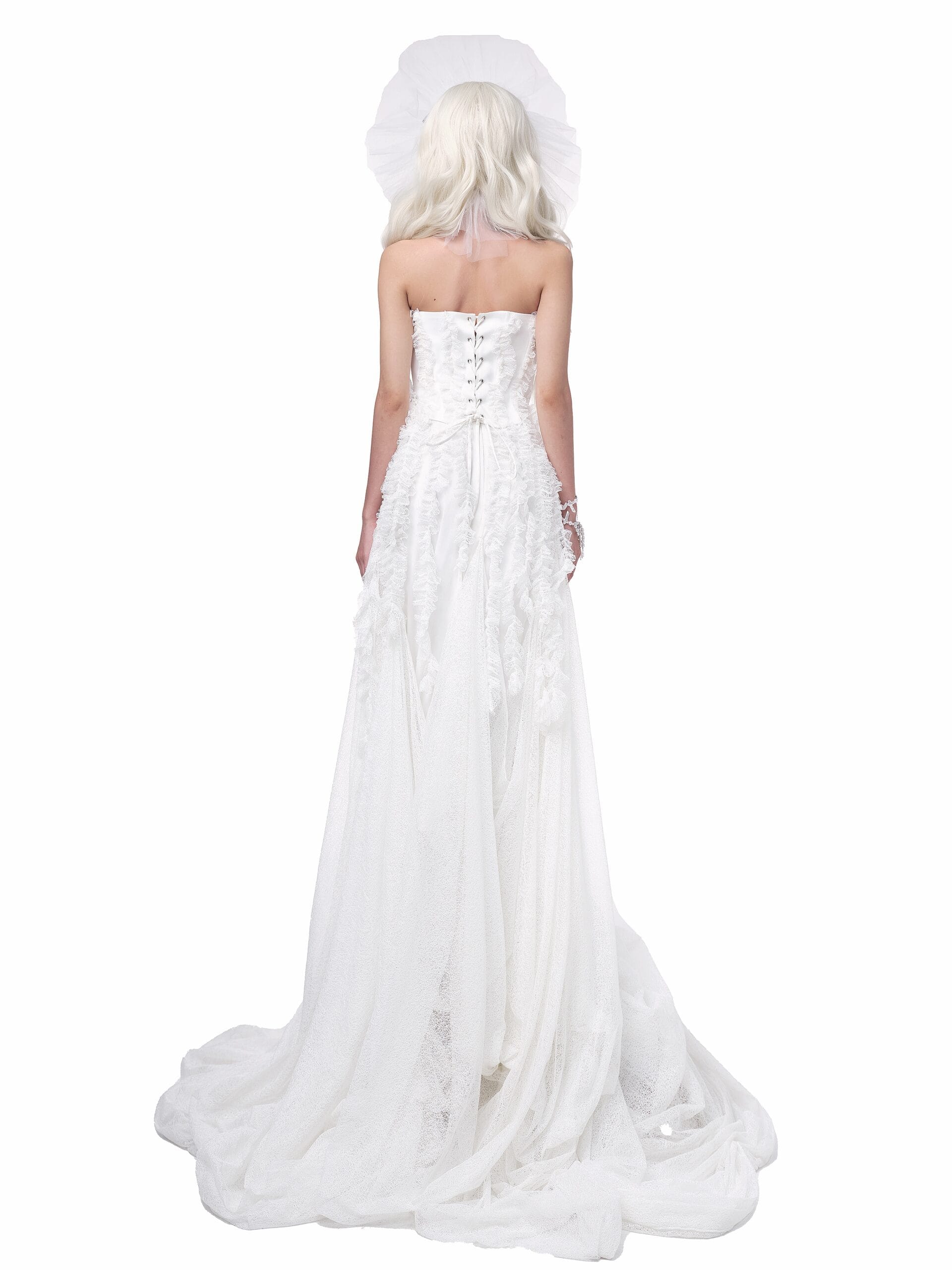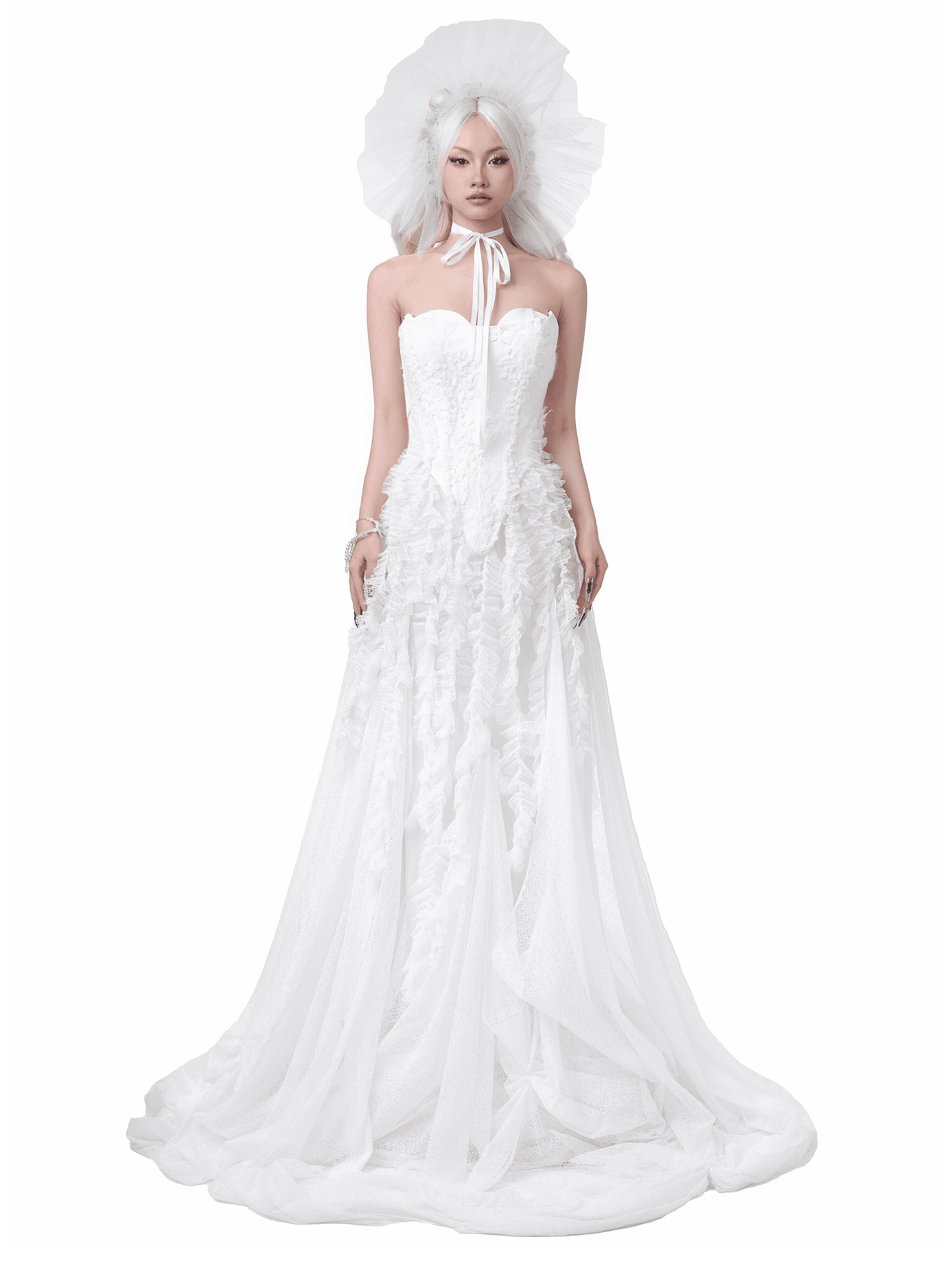 With its pristine white color, this outfit not only exudes delicacy and sophistication but also reflects purity and clarity. It is the perfect choice for women who want to shine and highlight their natural beauty.