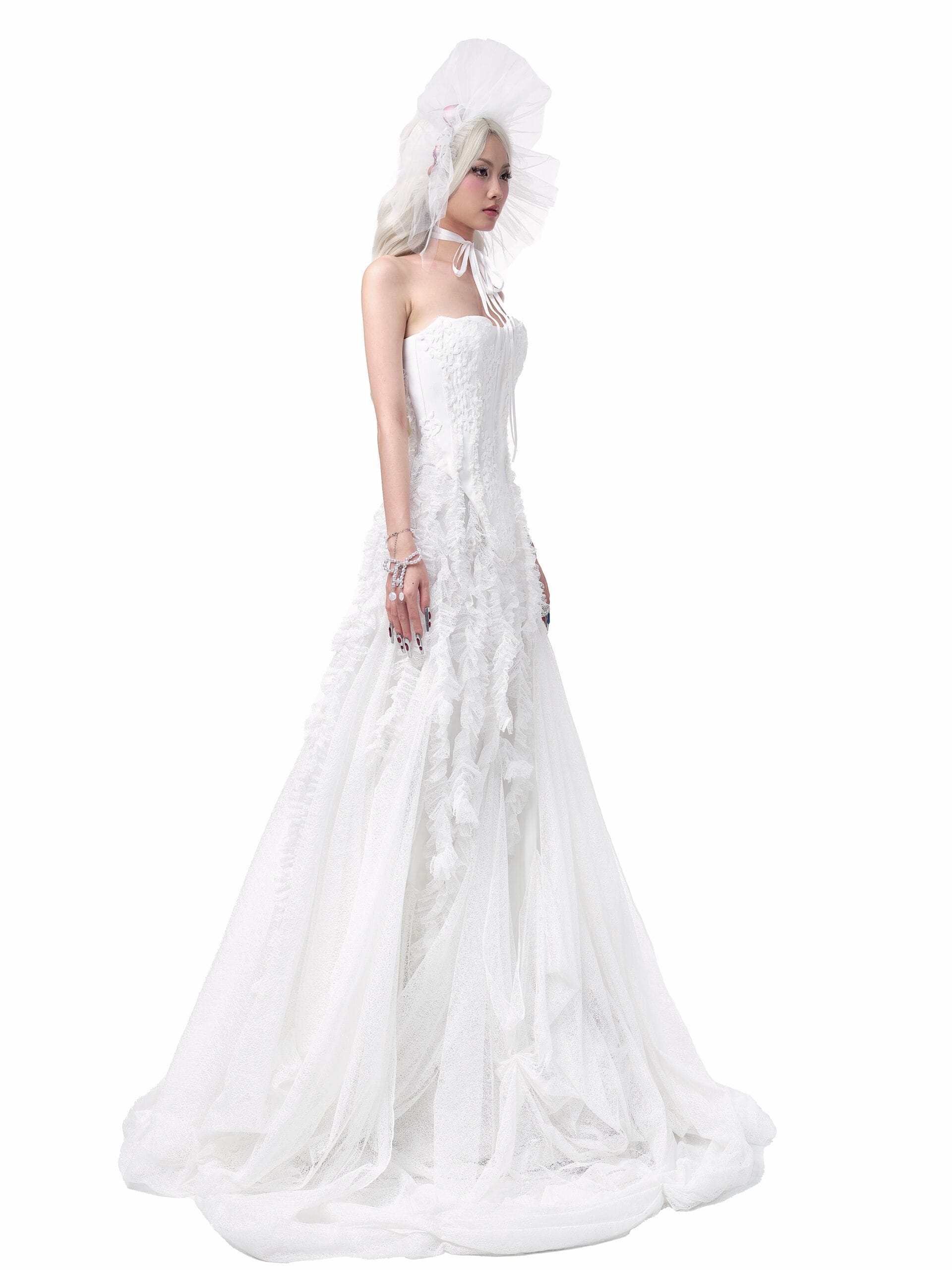 The fishtail-style skirt truly stands out as the focal point of the outfit, enhancing its allure and femininity. The exquisite addition of lace trim enhances the uniqueness and charm of the ensemble.