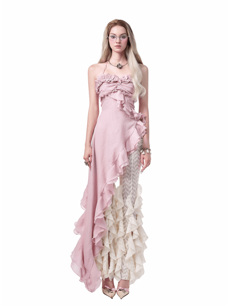 The two-strap dress features a form-fitting bodice, creating a seductive and feminine allure. The lower part of the dress snugly conceals imperfections, creating a slim and graceful silhouette for the wearer.